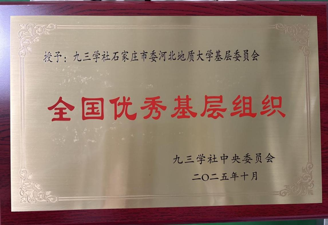 近日,九三学社中央委员会印发《关于表彰全国优秀社员、全国优秀社务工作者、全国优秀省级组织和全国优秀基层组织的决定》。九三学社河北地质大学基层委员会凭借在思想建设、参政议政、社会服务及组织发展等领域的突出成绩,荣获“九三学社全国优秀基层组织”称号。这是该基层委员会获得的首项国家级荣誉,也是石家庄市高校九三学社组织中唯一获此殊荣的基层单位。
